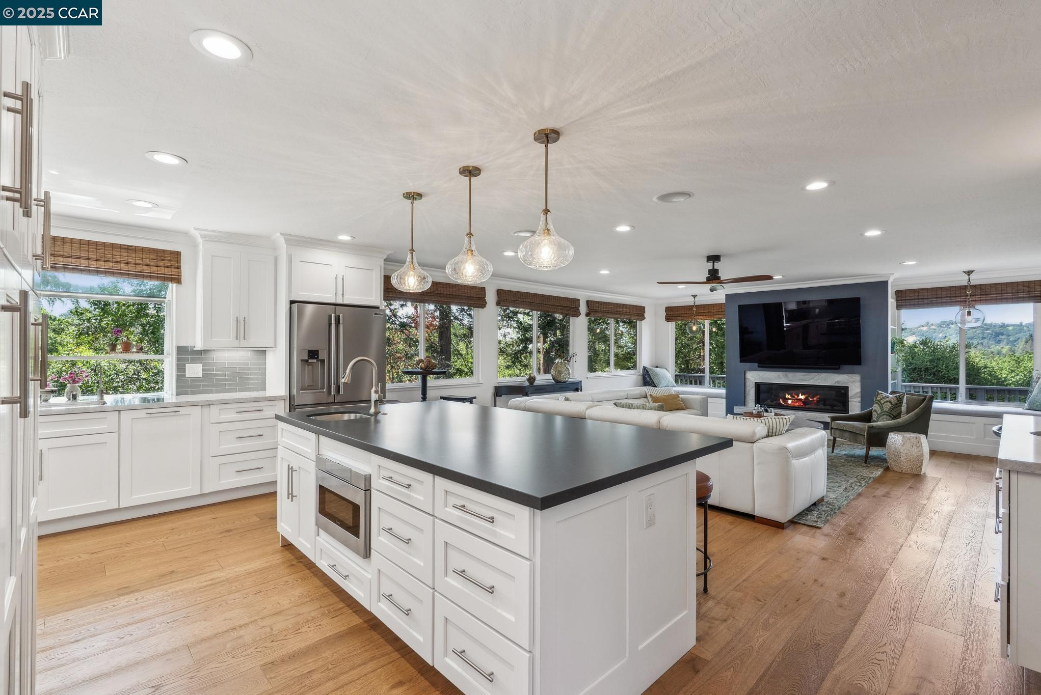 Spectacular, Sophisticated Single-Story View Home on Exclusive Pillon Real Welcome to this stunning single-level residence offering breathtaking views of the western hills. A dramatic entryway leads into elegant formal living and dining rooms, all showcasing sweeping vistas and gorgeous natural light. Beautiful wood flooring flows seamlessly through all public areas and into the expansive primary suite, which shares in the home's spectacular views. Thoughtfully remodeled throughout, the home features a spacious great room anchored by a striking fireplace and a light-filled kitchen--perfect for both everyday living and entertaining. Additional bonus room is perfect for projects. Situated on a gently sloping and highly usable 0.94-acre lot, the property offers endless possibilities. Surrounded by lush greenery and mature fruit trees, there is still ample space to customize--add a pool, vineyard, or even an ADU. Let your imagination run wild! Additional highlights include a generously sized three-car garage, abundant off-street parking, and a location that feels private and serene while remaining close to top-rated schools, dining, shopping, and commuter routes. This is more than just a home--it's a lifestyle opportunity waiting for you to make it your own.