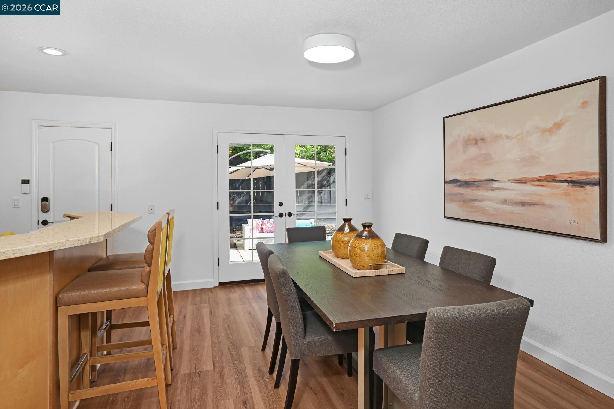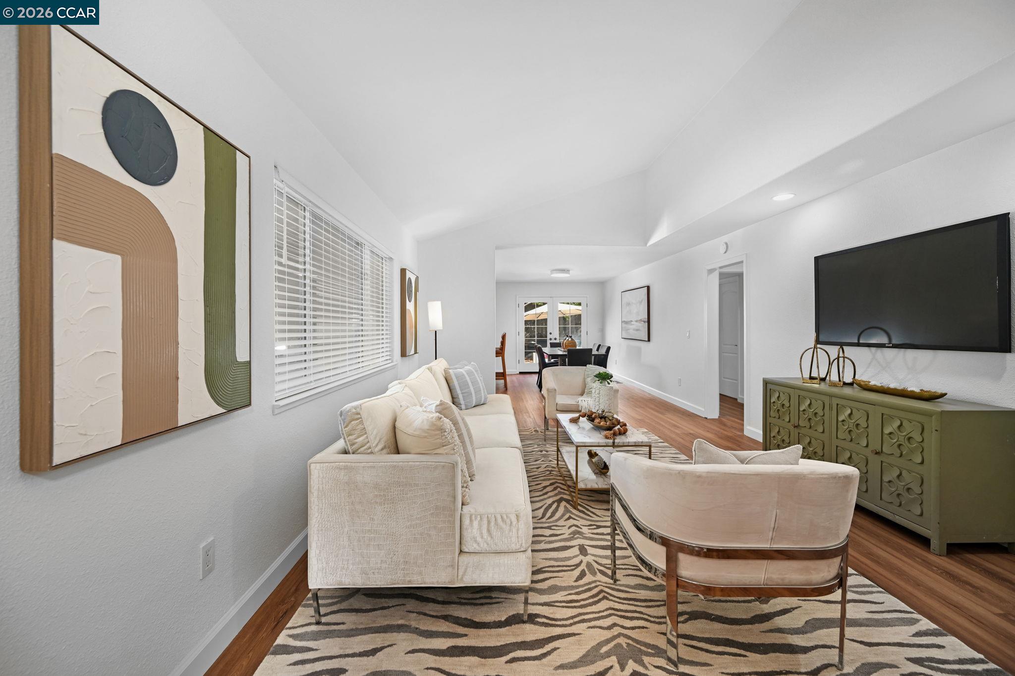 This beautifully updated home showcases inviting curb appeal and a flexible floor plan with 6 bedrooms and 3 full baths across 2,818 +/- sq. ft. A gracious covered front porch sets the tone, welcoming you into a thoughtfully designed interior. The formal living room, anchored by a charming fireplace, provides an elegant setting for gatherings, while the open-concept great room flows seamlessly into the updated eat-in kitchen. The kitchen features a central island, abundant cabinetry, and direct access to the backyard. Enjoy a peaceful outdoor setting with mature trees, a large patio, and an expansive lawn--perfect for play and entertaining. The downstairs bedroom wing offers a highly desirable ensuite bedroom ideal for guests or multi-generational living, along with three additional bedrooms and an updated hall bath. Upstairs, the generous primary suite is a true retreat with a private deck, plus an additional bedroom ideal for an office or bonus space. Updates include new luxury vinyl flooring, fresh interior and exterior paint, newer HVAC systems, and improved landscaping and drainage. Additional highlights include a circular driveway, abundant parking, and a 3-car garage. Come see this fabulous home in a convenient location near shopping, dining, and freeway access.