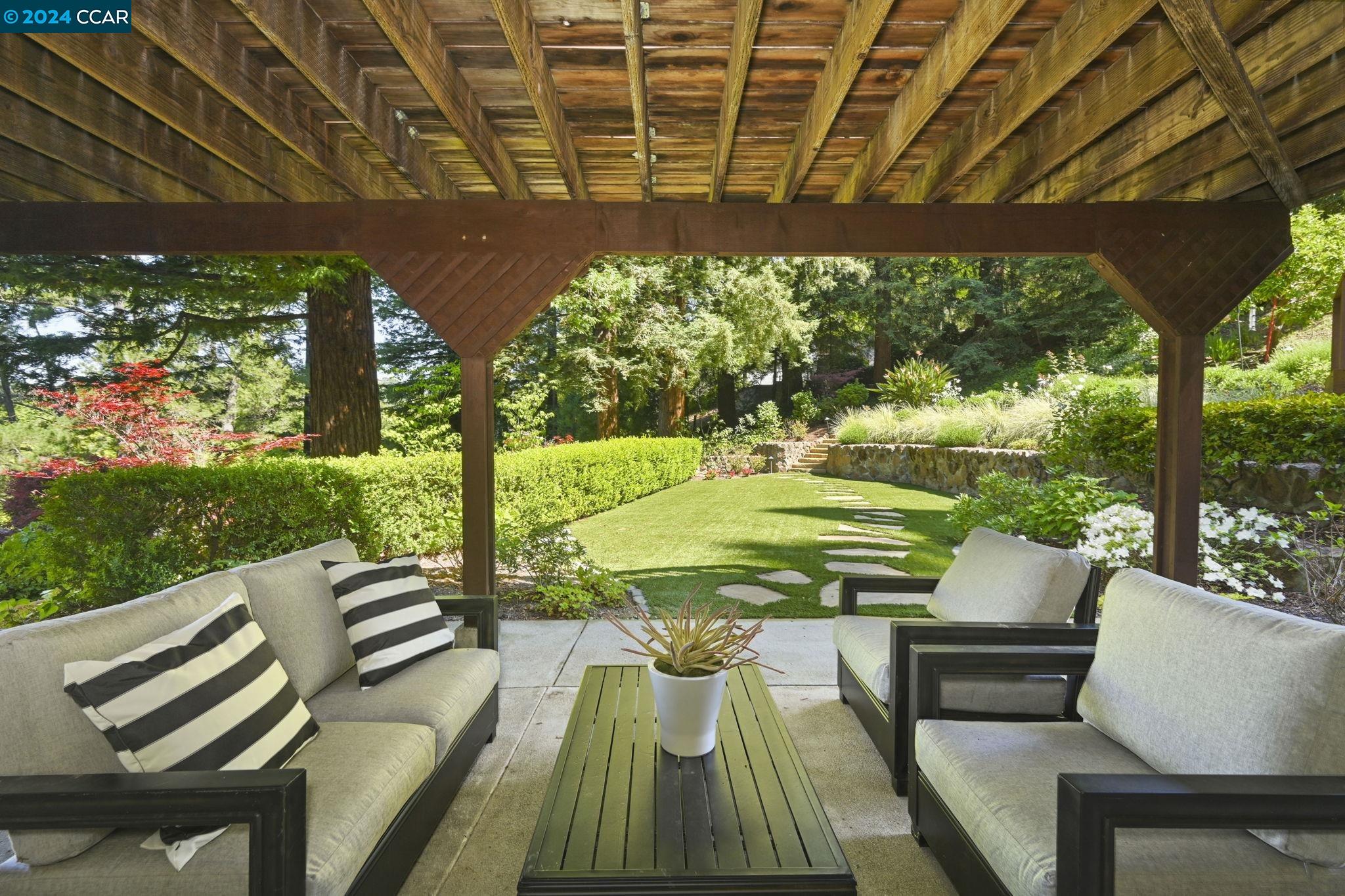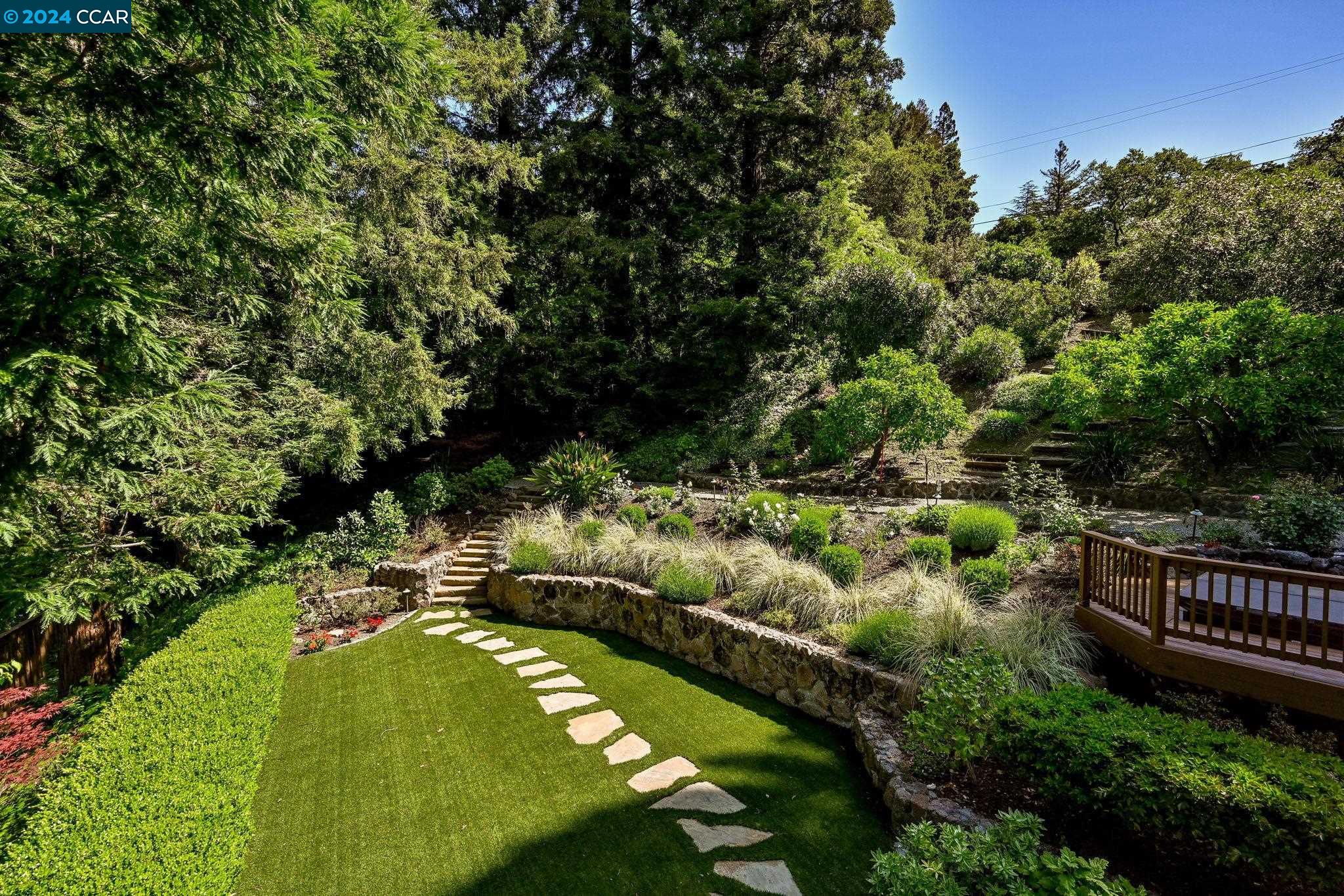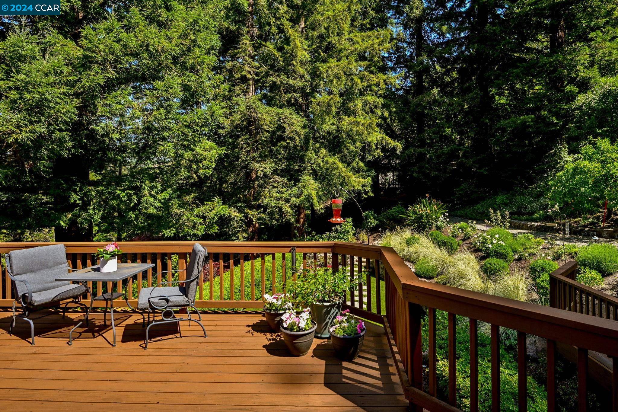 Nestled in desirable Hidden Valley, this meticulously maintained home offers serenity and privacy on a .53-acre lot framed by majestic Redwood trees. The entry is gracious and warm with hardwood floors and leads to the spacious formal living room with fireplace and adjoining dining room. The eat-in kitchen features ample cabinetry and counter space, stainless appliances, and opens to the family room with built-in entertainment center. Sliding glass doors lead to a large deck perfect for outdoor entertaining. The bedroom wing has a spacious primary suite with attached bath, 3 additional bedrooms and the hall bath. On the lower level is a huge bonus room, also with sliding glass doors to the back yard, a large laundry / bath area. Dont miss the large shop area , perfect for hobbies or additional storage. The glorious back yard is framed by Redwoods and surrounded by beautiful mature plantings. This quiet location is just minutes to Hwy 24, Bart, the Lafayette Reservoir, Oakwood Athletic Club, the shops and restaurants of downtown Lafayette and top rated Lafayette / Acalanes schools.