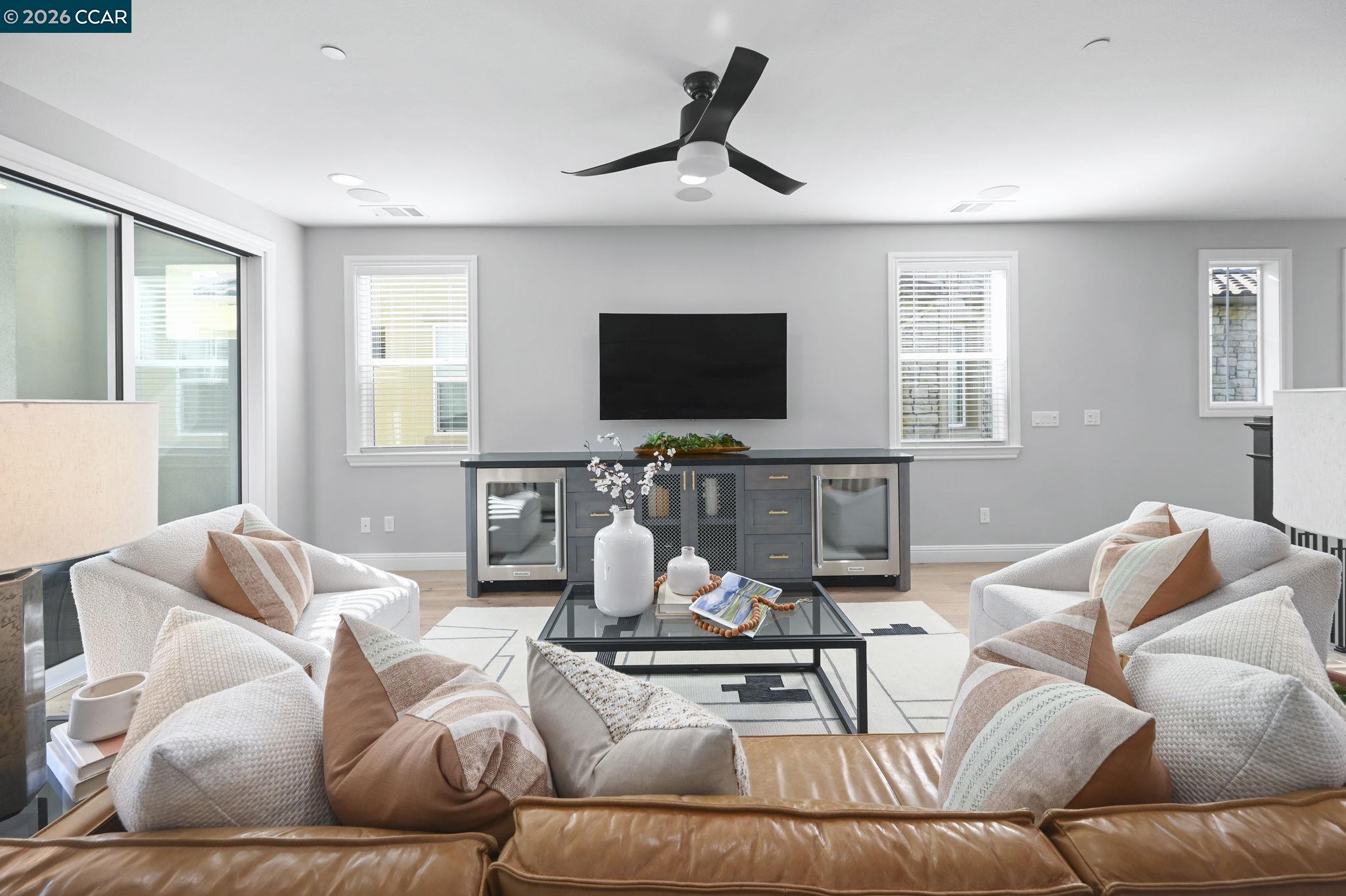 Sophistication and grace abound in coveted Gale Ranch. This exceptional residence truly has it all, enhanced by hundreds of thousands of dollars in thoughtfully curated, high-end upgrades throughout. Rich hardwood flooring, custom carpeting and refined finishes create an atmosphere of timeless elegance and comfort. At the heart of the home is a spectacular chef's kitchen, beautifully appointed with premium JennAir appliances, Sub-Zero refrigerator, striking waterfall island and remarkable custom cabinetry. Upstairs, a spa-like primary suite offers unparallelled elegance. An inviting patio and yard offer a rare sense of openness and tranquility, showcasing wide, unobstructed views with no direct rear neighbors - ideal for relaxed outdoor living and memorable entertaining. Located within the top-rated San Ramon Valley Unified School District, this home enjoys exceptional convenience to shopping, dining and everyday amenities. Low HOA dues provide outstanding community features, including a sparkling pool and spa, well-equipped fitness center, and playground - resort-style living at its finest! A rare opportunity to enjoy modern comforts and an enviable location in one of Gale Ranch's most desirable settings. Ideal floor plan features a bedroom and full bath on the first floor!