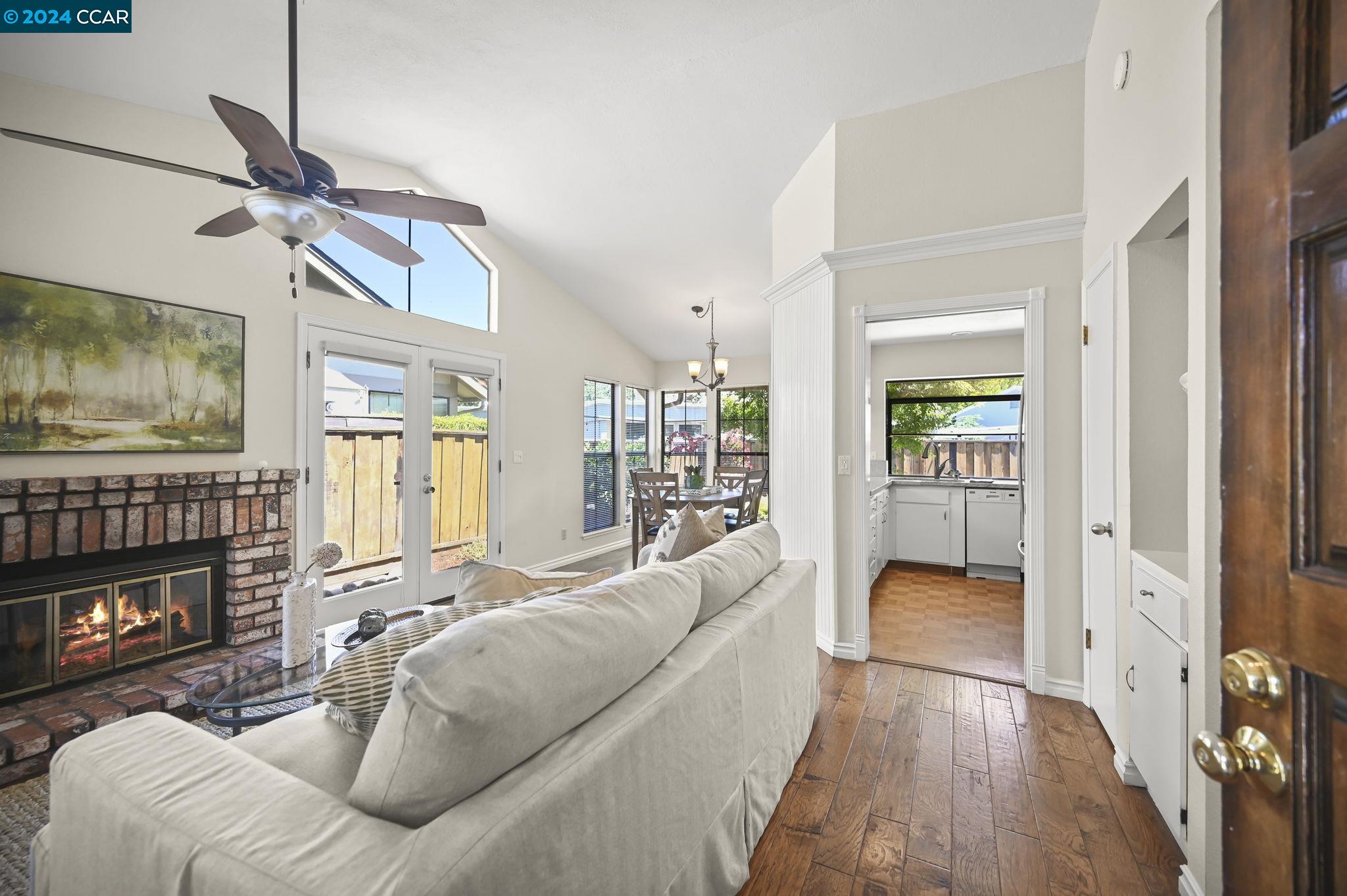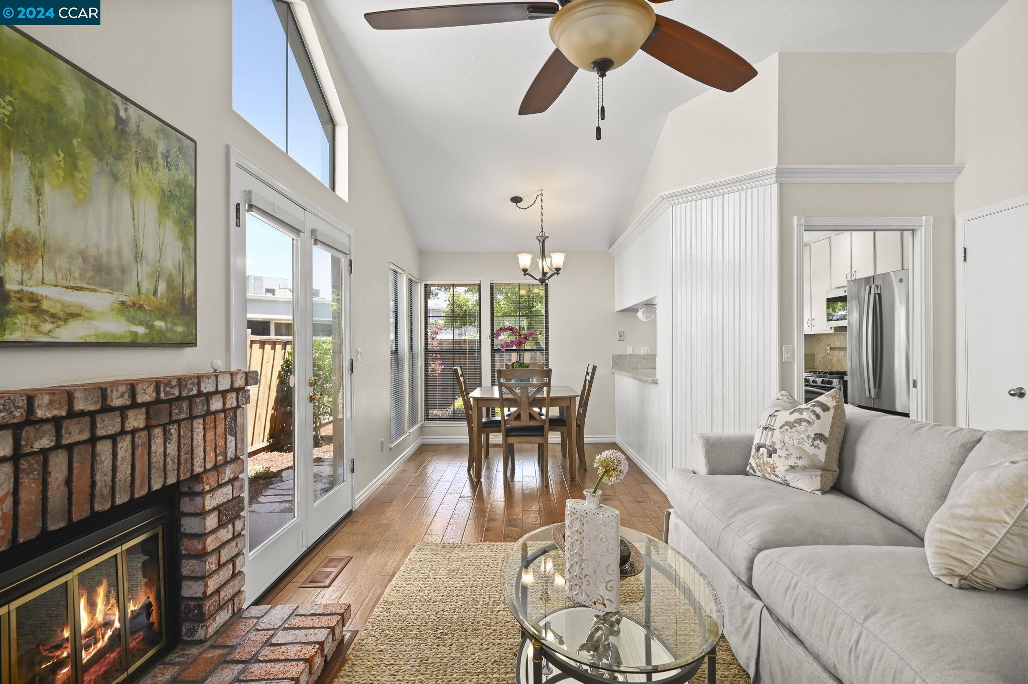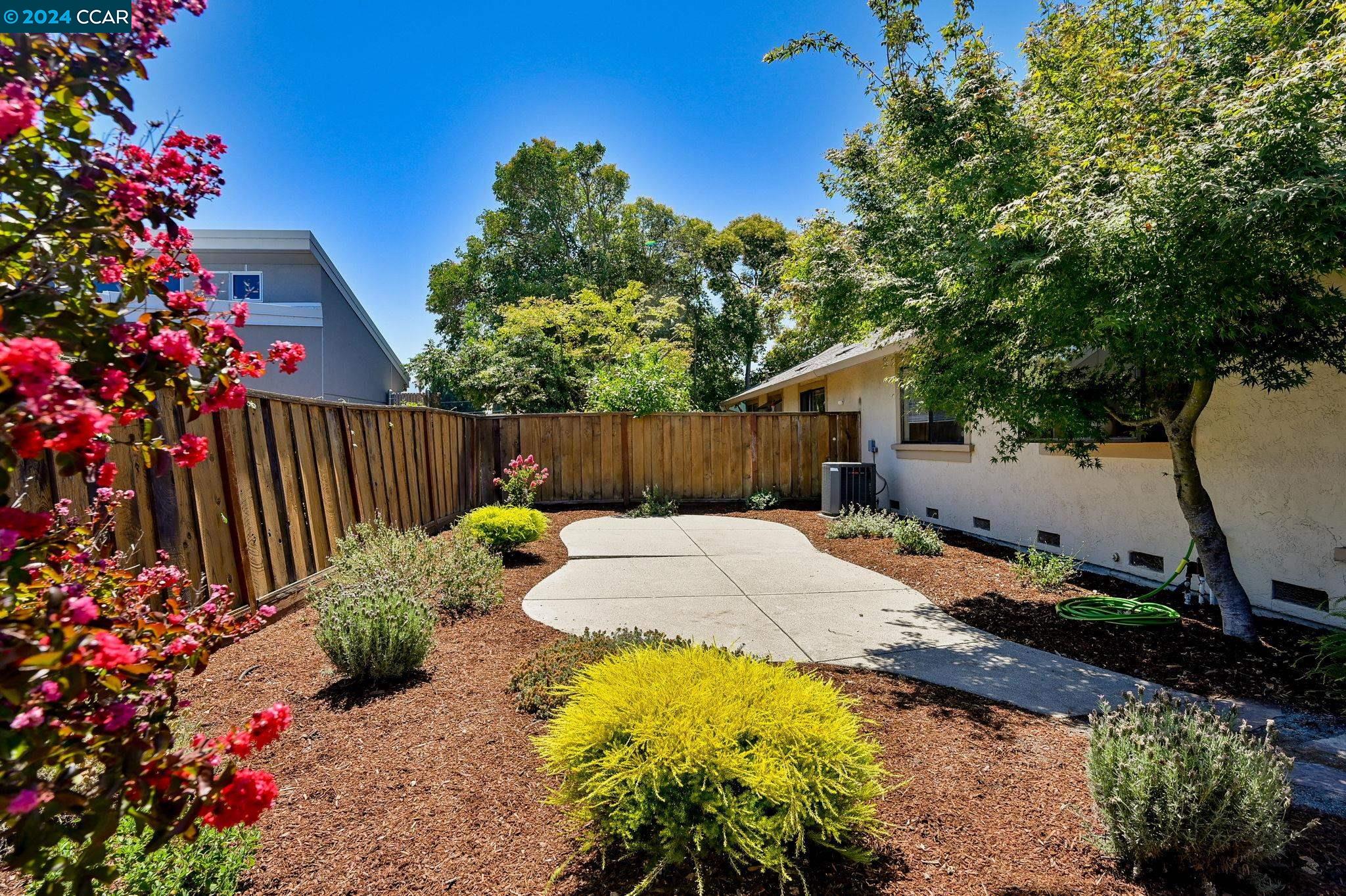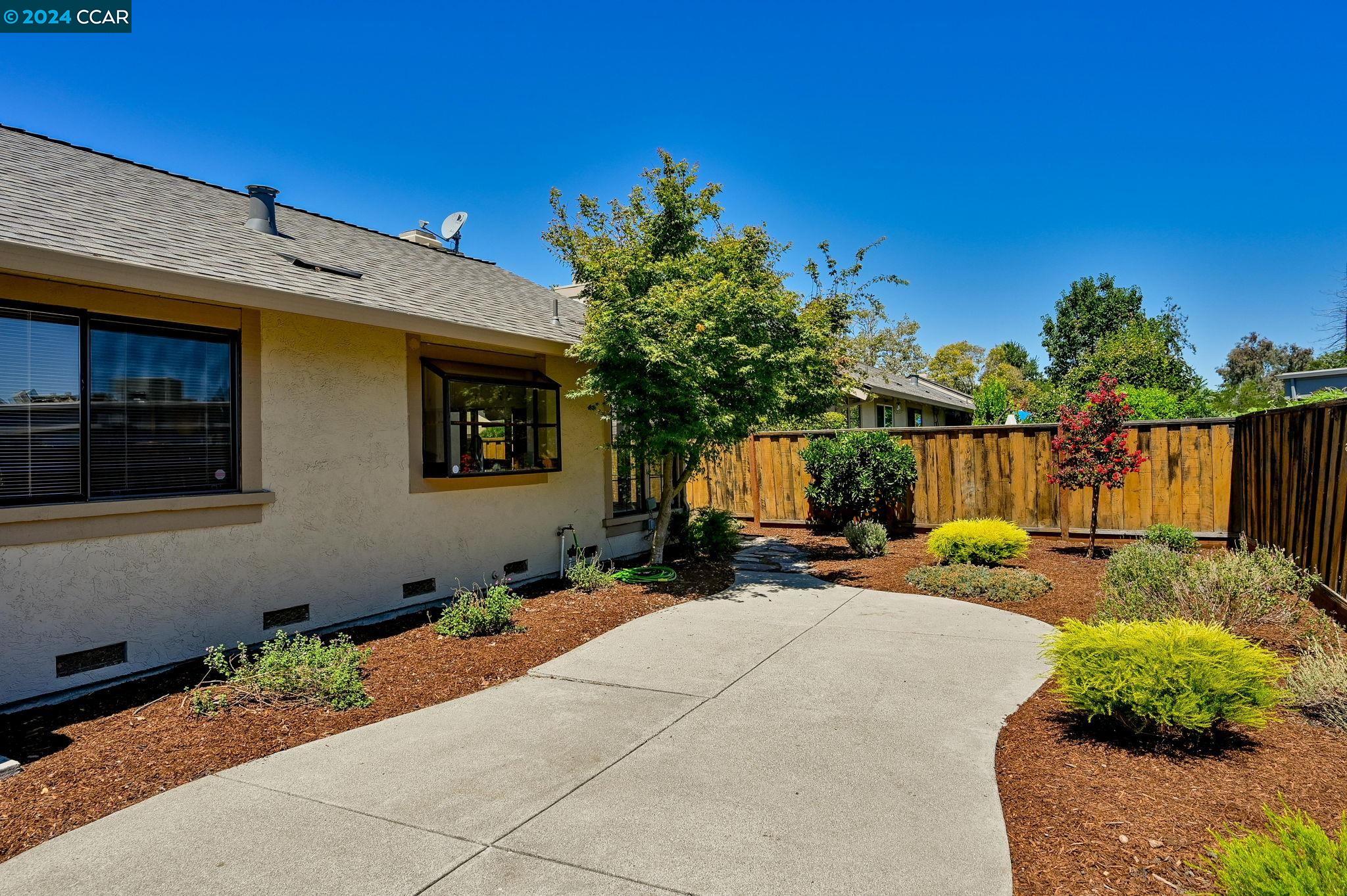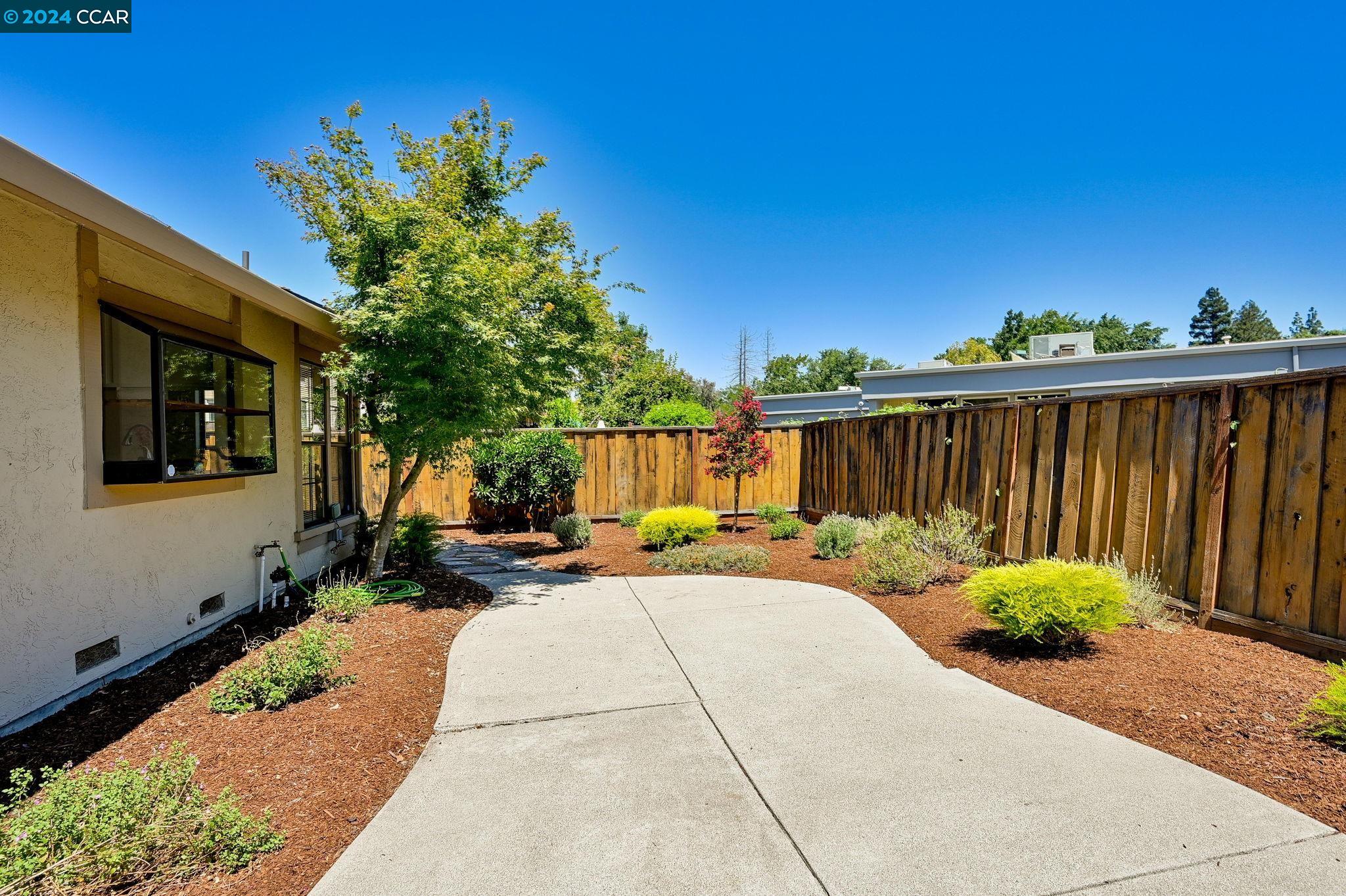 Welcome to this inviting single-level townhouse featuring two bedrooms, two full baths, and a LARGE fenced yard. Offering the perfect blend of comfort and contemporary style this home has a spacious, open floor plan highlighted by an updated kitchen that overlooks the backyard. The kitchen connects to the airy living room and dining area, bathed in natural light and complemented by a cozy fireplace. Step outside to discover the landscaped yard. The primary bedroom has ample closet space and its own ensuite bathroom. The second bedroom is equally spacious and is conveniently serviced by another full bathroom. Enjoy wood flooring in the main living areas and new carpet in the bedrooms. This end-unit boasts a lovely private entrance and includes a two-car garage with a convenient laundry area and ample storage space. Don't miss the opportunity to experience the comfort and charm of this delightful property.